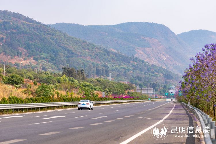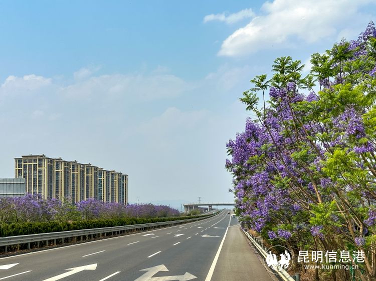 近日,昆明繞城高速公路東南段迎來了一年一度的藍(lán)花楹盛放期,道路兩側(cè)藍(lán)紫色的花海如夢如幻。這條“藍(lán)花楹高速”已經(jīng)成為了展示“高原明珠綠美春城”建設(shè)成果的一張靚麗名片。