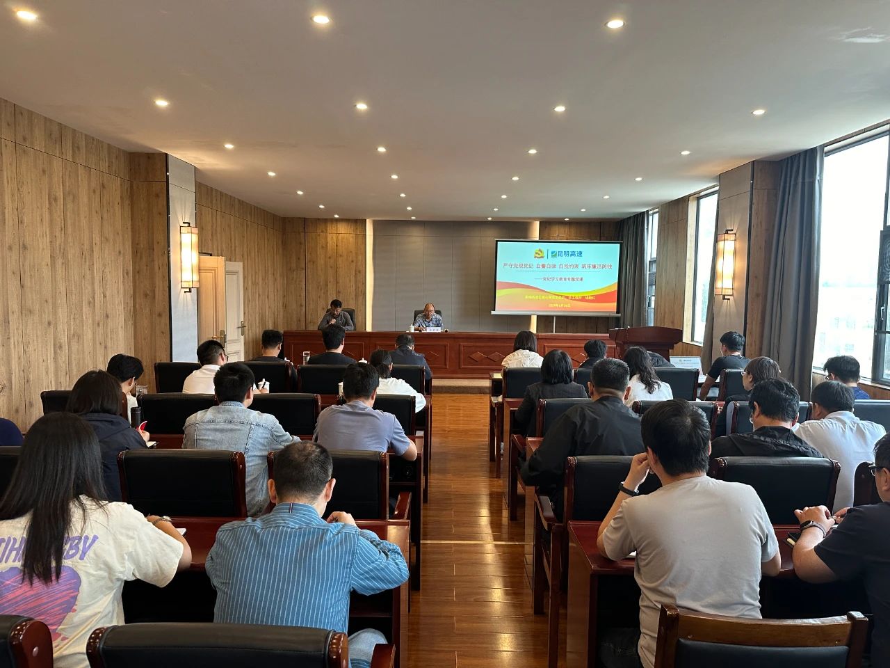 2024年6月26日,昆明高速公路公司黨委委員、總工程師楊新紅以“嚴(yán)守黨規(guī)黨紀(jì) 自警自律 自我約束 筑牢廉潔防線”為題講授黨紀(jì)學(xué)習(xí)教育專題黨課。